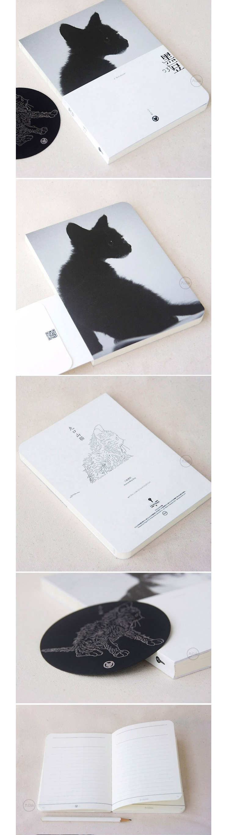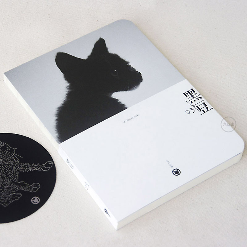 九口山猫系列160page灰板裸装白纸横线笔记本-黑豆(03)