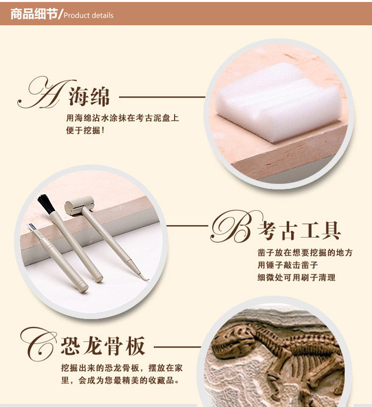 儿童考古挖掘玩具 超大版恐龙化石-大平面霸王龙